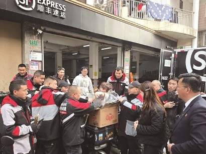 签约仪式后,为辖区快递员等新就业群体送上暖宝宝、加绒手套等防寒物资,更贴心准备了来自宝山路街区爱心商铺提供的修鞋券,承载着党组织的深切关怀,让奔波在外的小哥们感受到冬日里的暖意与牵挂。
