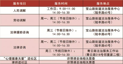宝山路街道法治服务中心二月公共法律服务菜单