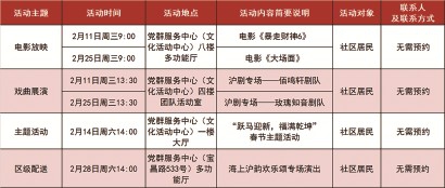 宝山路街道党群服务中心(社区文化活动中心)二月主题活动安排表