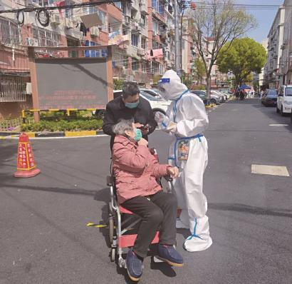 长风二村下辖5个小区,有66个门栋,2300户,6600多名居民,其中老人占了1/2,居民需求多。确认楼内居民信息、对接医护、核酸筛查、抗原检测、发放物资等,一周连着一周转、一件接着一件干,一天保底微信步数2万5,每天不到4小时的睡眠时间,她就像停不下来的“陀螺”。