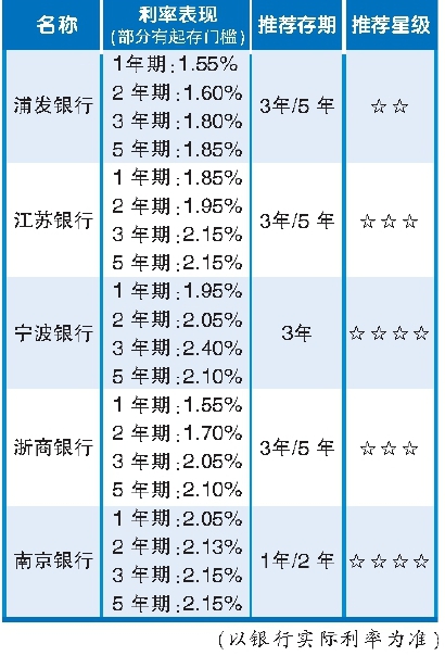 不过记者调查发现,相较国有大行,部分中小银行定期存款年利率还是“摸”到了“2”字头,且平均水平均高于五大行。8月上旬,记者在徐汇区多家银行网点了解到,1年期存款利率南京银行还是给出了2.05%;3年期拔得头筹的是宁波银行,利率为2.40%(见表)。