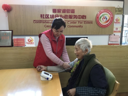 在老年人日间照护中心,每日早晨,护理人员都会为老年人测量体温、血压、心率等基础体征,并详细记录健康状况,一旦发现异常及时与家属沟通并提供指导建议。