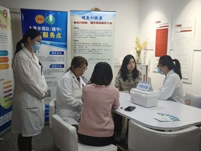 活动现场人气满满,温馨有序。中心全科、中医等医护骨干坐诊服务,为陆续前来的楼宇职工提供血压测量、中医脉诊、尿酸检测等一对一健康服务。医生们不仅细致检查,更结合职场人常见的久坐、疲劳、饮食不规律等问题,给予了许多实用的个性化建议。