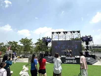 在森兰花园城,5月1日-5日“穿越XIN音浪”全明星音乐节强势登陆,联动街舞大赛、粉丝应援及国模IP快闪,日均引流破万。伴随着一阵阵劲歌热舞,吸引了不少市民驻足。