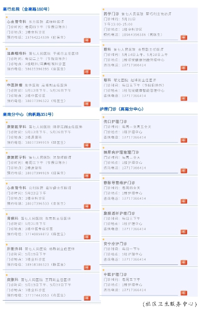 5月1日至31日专家门诊安排如下,请居民朋友知悉!