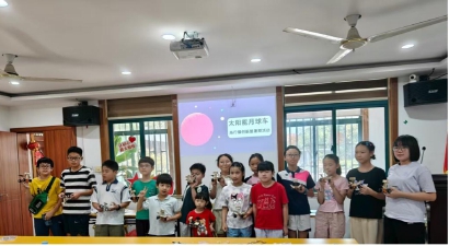 志愿者通过趣味科普,向孩子们介绍了月球车的科学原理和太阳能技术的应用场景,孩子们分组配合,动手拼装太阳能月球车模型,经过一个小时拼装调试,光伏板吸光,马达轻鸣,一排排小车并向行驶,现场掌声、欢呼声此起彼伏。