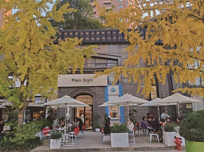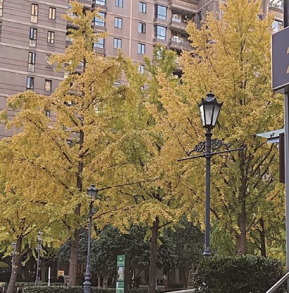 下午阳光斜照时,外摆区拍照最佳,背景是金黄的银杏,秒出氛围感大片!
