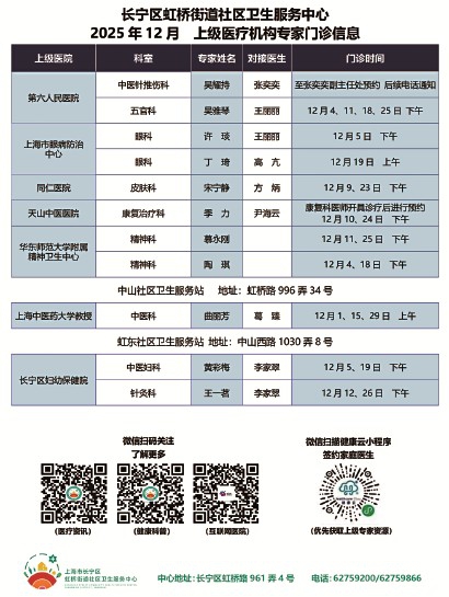 虹桥街道社区卫生服务中心12月专家门诊信息