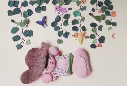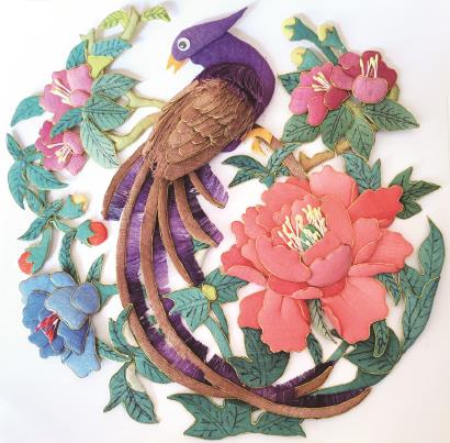 布艺贴画是中国古老的民间手工艺术之一,作品巧妙地利用布料本身的花纹、颜色和明暗度,通过创造性的裁剪、拼合和粘贴,呈现出意想不到的艺术美感。