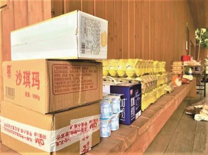 鸡蛋、牛奶、酸奶……40多户居民总共下单了300多个单品,从卸货、核对数量、打包到居民领完所有物品,任莺和儿子总共花了五个半小时。