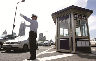 在儿时的记忆里,最先让我熟知、崇拜的,就是交通警察。他们穿着上白下蓝的制服,无论是酷暑严寒还是风雨交加,无论是白昼周日还是逢年过节,不差分秒地站在马路中央,聚精会神地指挥,既是生命的守护神,又是城市的一道亮丽风景。其实,交警指挥交通,可以追溯到十九世纪二十年代,那时交警是配备手杖指挥交通,他们站立在红白相间的圆柱上,举着一块木牌,正反面涂着红白油漆。举着红面牌,禁止车辆通行;举着白面牌,示意车辆通行。红面就是后来的红灯停,白色就是绿灯行。到了七十年代末八十年代初,随着交通路口手动红绿灯的广泛设置增多,才渐渐改为用手势指挥交通,尤其是在繁华交通通衢中间的交警岗亭,圆柱形状,红白相间,有三层楼高低,瞭望交通,一览无余。正襟危坐着的警察身穿白色的警装、佩戴红色的领章、头顶威严的国徽,举重若轻手动控制路口信号灯光,指挥往来车辆。红绿灯是早上6点至晚上6点运行,整整12个小时,需要换岗交接,先是上岗交警正步走向指挥台,朝走下岗亭的执勤交警敬礼,然后执勤交警还礼,并将指挥棒交予新上岗的交警,登梯走进岗亭,整套动作标准、潇洒、严正。