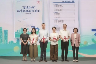 《“家在上海”城市民族工作导则(2025版)》也在现场正式亮相。上海市政协民宗委专职副主任徐梅,上海市民族和宗教事务局二级巡视员蒋悦新共同上台,向相关单位代表赠书。