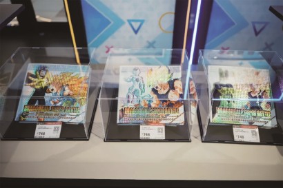 仅仅一层之隔,龙之梦还有另一家官方卡牌店值得一探。2024年,万代全国首家官方店铺——万代卡牌中心开业,设有卡牌区、展示区和售卖区,集结了《数码宝贝卡牌对战》《航海王卡牌对战》《UNION ARENA》三大IP的卡牌及商品。