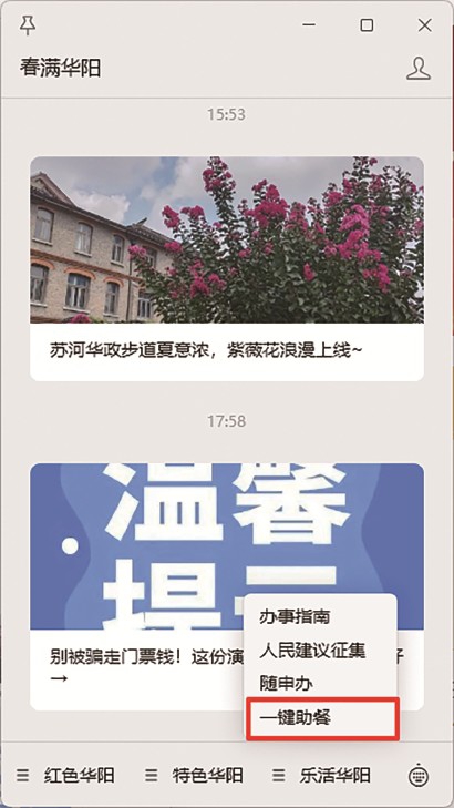 即日起,华阳辖区内60周岁及以上老人可通过街道“一键助餐”平台进行订餐(子女或亲属可帮助订餐)。平台已开始正式送餐。