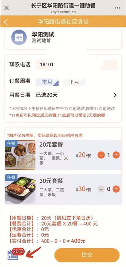 点击“华阳路街道社区食堂”,进入助餐页面,根据需求选择助餐时间以及套餐即可支付。
