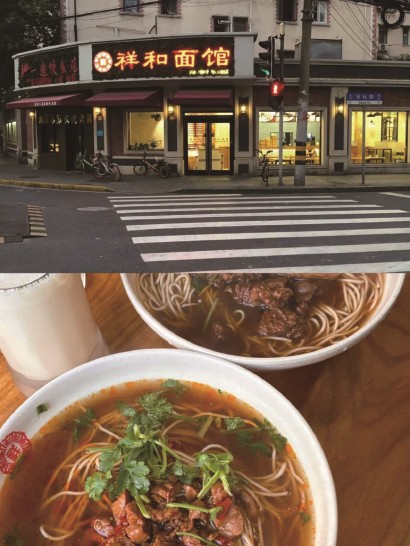 祥和面馆的葱油拌面香气扑鼻,十分诱人,在定西路这本美食相册里,阿拉上海宁记忆中的老味道永远是“最亮丽的风景”。