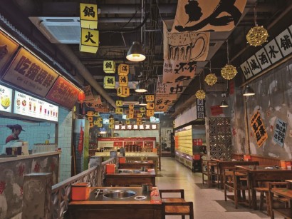 晚餐时段,定西路上的火锅香气四溢,炸蛋吸饱汤汁、毛肚七上八下即脆爽,门口糖水铺的拉丝凉糕与黄桃冰,成了解辣的“最佳搭档”。