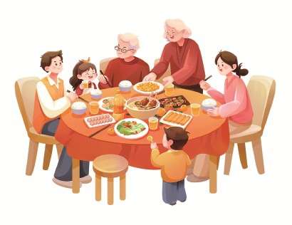 年夜饭的菜肴把整张桌子摆得满满当当,红酒和椰奶放在桌子角上。一家三代坐下来举杯同庆,不寻常的虎年将要离去,满怀希望的玉兔即将降临。