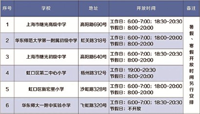 嘉兴路街道内,还有6所中小学体育场地免费错峰对居民开放。