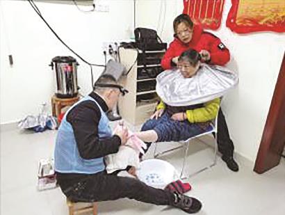 虎年春节过后,刚过完年的社区志愿者们,一大早就赶到居委会活动室,为社区老人提供理发、扦脚服务。