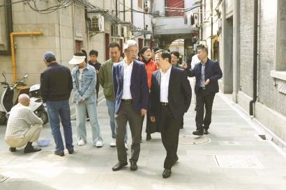 日前,区政协主席陈志奇,区委常委、常务副区长洪继梁带队至老西门街道,调研2023“一街一路”项目建设情况。