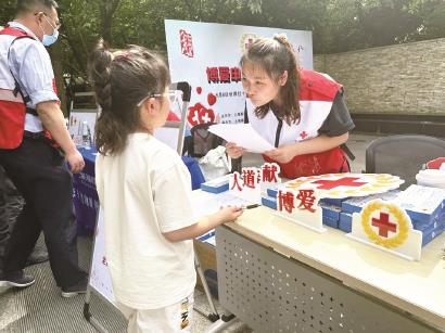 街道红十字志愿者们现场摆摊宣传红十字文化、“三救三献”等红十字知识,向来往居民讲述红十字标志的含义,介绍红十字会的精神和宗旨,突出“博爱申城 你我同行”的主题,提高博爱意识。