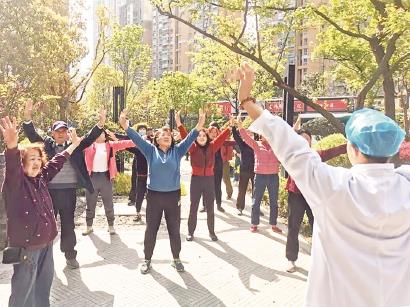 “左右开弓似射雕”“摇头摆尾去心火”……近日,也是园居委邀请了上海中西医结合医院一位老中医来社区开展“八段锦”现场教学活动。