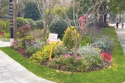 银杏、北美海棠、紫薇、梅花、羽毛枫桩等乔灌木新植入园,构建“春花、夏荫、秋叶、冬枝”的季相景观;塔型黄金枸骨、山茶球、蓝盆花、落新妇等十余种特色植物打造自然花境,高低错落间,生态多样性与观赏性兼具。