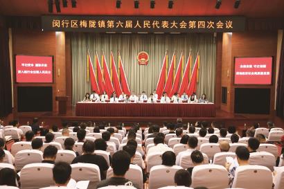 7月18日,闵行区梅陇镇第六届人民代表大会第四次会议在庄重热烈的气氛中顺利召开。镇人大代表以及部分列席、邀请代表出席大会。