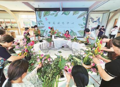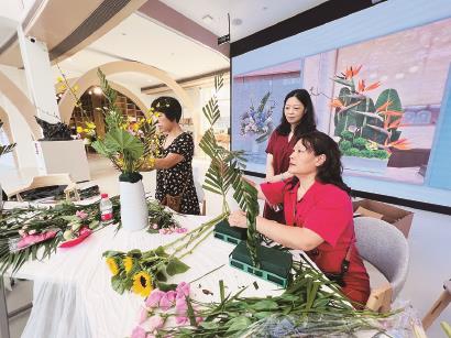 园艺中心启用当天,开展了一堂艺术插花技巧培训。花艺爱好者吴女士特意前来参加,“园艺中心的开放让我们有了学习交流花艺的平台,今天的课程教学了异型器皿的插花技巧,我以前没有接触过,通过培训学到了很多,打开了新思路,让我对插花艺术有了新思考。”