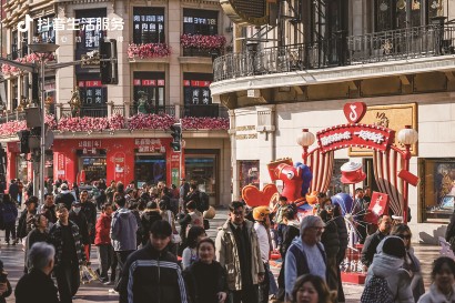 泼墨春联映红商圈楼宇,手编中国结串起社区温情,老字号美食街的蒸汽与数字消费券的代码......构成了南京东路街道的年味经济图景。