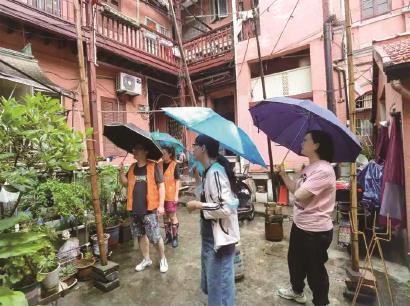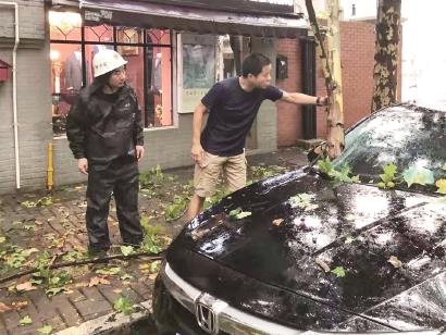 “这里的墙体可能会发生掉落,砸伤路人,快修理一下。”“这几根树枝眼看要被大风吹折,赶紧先修剪掉。”“你看,这家门店的店招太危险了,摇摇欲坠,一起把它拆下来,免得发生危险。” ……来自南京西路街道各个职能部门的工作人员,正冒着风雨,开展沿街巡查,并及时督促整改,排除险情。