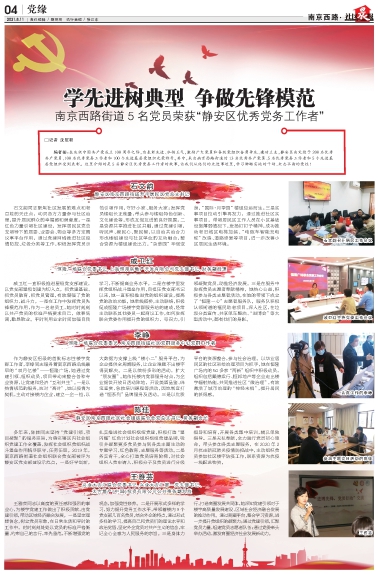 编者按:在庆祝中国共产党成立100周年之际,为表彰先进、弘扬正气,激励广大党员和各级党组织奋勇争先、建功立业,静安区决定授予200名优秀共产党员、100名优秀党务工作者和100个先进基层党组织光荣称号。其中,来自南京西路街道的13名优秀共产党员、5名优秀党务工作者和5个先进基层党组织受到表彰。这里介绍的是5名静安区优秀党务工作者的故事,让我们从他们的先进事迹里,学习脚踏实地的干劲、矢志不渝的党性!
