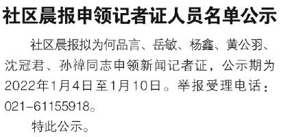 社区晨报申领记者证人员名单公示