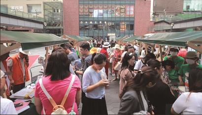 在活动现场,来自辖区内的11家社会组织与8家企事业公益团队依次设摊,展示的项目包含:“星星的孩子”公益演出、非遗文化体验、闲置物品公益交换、公益律师法律咨询、文保建筑项目展示、乡村振兴项目展示、健康知识科普宣传等。