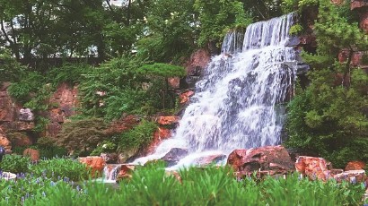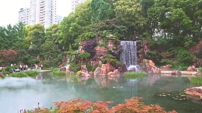 真的想不到,在高楼林立的市中心,行人竟能遇见如“亚马逊森林”般的瀑布溪流。大家从位于老成都北路与大沽路交叉口的北1门踏入辅德里公园,不仅能看到眼前竹林清澜似海,向里稍走几步到公园中心湖畔景观区,更能看到清凉的瀑布水流从假山上倾泻而下,气势磅礴。