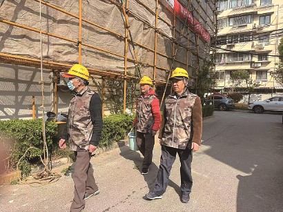 作为上世纪90年代建成的老旧小区,建业新村面临基础设施陈旧、环境管理乏力等问题。今年初,小区启动居民房屋全面整修工程,涉及走廊外墙粉刷、顶层防水改造、厨房排污管改道等关键民生问题。居民区党总支书记沈莉萍同样有着军旅生涯经历,深知退役军人的责任与担当,在她的支持与带动下,退伍军人志愿者主动扛起“安全与质量监督员”的责任。