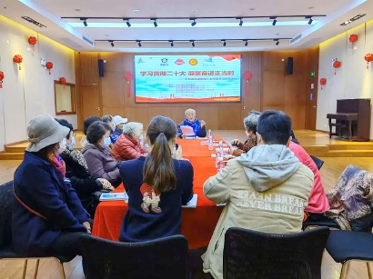 今年86岁的满必鸿曾经参加过抗美援朝,除了宣讲团的宣讲员身份外,还是欧阳路街道侨联顾问和联络员。活动现场,满老师以二十大报告要点为主线,对党的二十大精神进行系统宣讲和阐释,大家结合个人经历,谈变化、话发展,对党的二十大精神进行现场交流、分享。