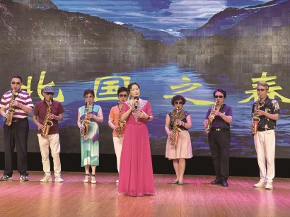 广场舞团队组成14支小分队“大显身手”。气势恢宏的电吹管演奏《歌唱祖国》《中国军魂》《红星歌》等经典曲目率先登场,熟悉的节奏如同一把钥匙,打开了台下观众的“记忆之门”。随后,口琴、萨克斯、舞蹈、葫芦丝、时装秀、吉特巴等不同形式的节目轮番上演,表演者们用才艺表达对党对祖国的衷情,用真挚传递社区和谐的美好祝愿。台下居民群众轻轻跟着节奏拍打双手,笑容里既有对艺术的满足,也有对表演者的欣赏。
