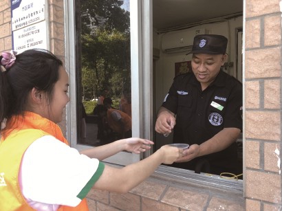 在铜川党群服务中心,食堂工作人员提前熬制好手工绿豆汤并盛放在保温桶中,环卫工、快递员、保安等户外工作者随时可以在高中生的引导下进来歇歇脚、喝一口高中生志愿者们送来的美味“解暑汤”。除了即时补给,中心还设置了纳凉休息区,让大家都能在高温时段进入这个温馨的“港湾”暂避暑气。切实感受到社区的关怀,平安度夏。