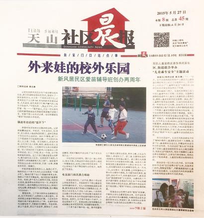 牟桂君,新风居民区居民,2015年被评为上海市优秀志愿者、“全国五好家庭”。2015年5月的一天,记者采访了新风居民区爱苗辅导班创始人牟桂君,并在当月27日《天山社区晨报》头版发表了“外来娃的校外乐园”一稿。转瞬七年半过去了。最近,记者二度采访牟桂君。