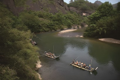 九曲溪是凡去武夷山必到的景点之一,武夷山的夏天绿意盎然,置身于童话般的森林世界。冬季的武夷山也有其独特的景观,没了夏季湍急水流带来的惊心动魄的刺激,有的是暖阳照射下平缓水流上慢悠悠的闲情逸致。清晨,阳光洒落在清新透亮的天游峰,冬日里的天游峰苍翠妖娆,远离了都市的喧嚣,呼吸着新鲜的空气,使人倍感心旷神怡。