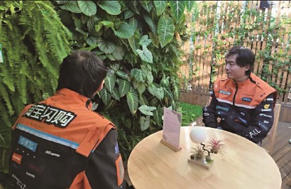 “平时总在和时间赛跑,手机里‘订单即将超时’的提示音就没停过,很少有机会坐下来感受慢生活。”骑手周思平在体验后感慨道。在绿化墙环绕的核心疗愈区,他伸手触摸蕨类植物的细腻叶片,薄荷与迷迭香的清新香气萦绕鼻尖,耳边传来潺潺水声与清脆鸟鸣,此前因赶单而“停不下来”的紧绷神经逐渐放松。