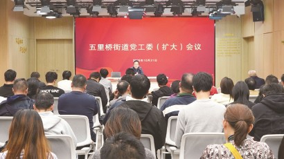 近日,五里桥街道召开党工委(扩大)会议,传达学习党的二十届四中全会精神以及上海市委书记陈吉宁在五里桥街道党群服务中心向基层宣讲党的二十届四中全会精神时提出的要求。街道党工委书记、人大工委主任张辉主持会议并讲话。