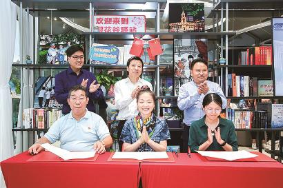 苏州河护水队代表戴天豪、千岛湖民间河长队代表郭飞飞、众安ZAction志愿者队代表李相宜在活动中签署了共建协议,将各取所长,发挥好两地三方志愿者队伍的优势和特点,积极联动,开展水源保护行动。外滩街道办事处副主任杨婵珏、杭州市淳安县五水共治指挥部副指挥何杰云共同点亮装置,宣布“迎建党百年,感苏河变迁”主题3D影展正式启动,让在场的居民和企业员工感受苏州河变迁最生动的记忆。