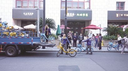 早上9:30,在久事商务大厦门口,黄浦停车管理人员正将美团、哈啰、青桔的共享单车一辆辆搬到大卡车上,不到十分钟,拥挤的九江路人行道顿时敞亮起来。而这一切都要从外滩街道针对非机动车的“动真碰硬”治理行动说起……