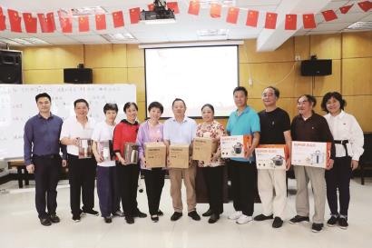 趣味运动会精心设计了8个游戏项目,细分为竞技类和参与类,均为上世纪老上海弄堂里的游戏。活动采取敲章打卡的形式,大家乐此不疲地参加各个项目,一名名“老年运动员”仿佛回到了童年时代在弄堂里嬉戏玩耍的快乐时光,纷纷打趣说自己“返老还童了”。
