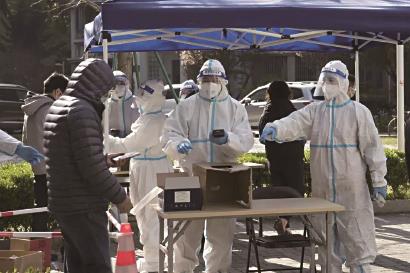 天台家园小区由39幢10层楼高的建筑组成,共有600多户1500余人。连续一个多月来,小区每次核酸采样,业委会主任王燕菁都是全勤上岗,刚开始时常一天站立十几个小时,但她不言辛苦并坚持着。“我是退休党员也是小区业主,为了我自己也为了我的家,这一次我们业主、居委会和物业必须齐心协力,共渡难关。”她默默鼓励自己。令王燕菁庆幸的是,不断有志愿者加入进来与她并肩作战。这其中有三口之家、母子档、夫妻档;有法官等公职人员,也有公司管理人员;有年轻党员也有普通群众,有50年党龄的老同志也有00后大学生;还有独自在沪打拼的租客……