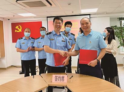 9月2日,新泾镇社区党群服务中心党支部携手上海市农业农村委员会执法总队党委举行“凝心聚力强党建 联建携手共奋进”——主题交流活动暨共建联建项目签约仪式。上海市农业农村委员会执法总队党委副书记、纪委书记汤惠杰、新泾镇党委委员许晶晶和共建单位党员代表出席活动。