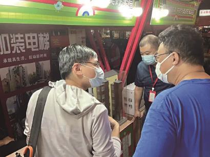 和王先生有着相同需求的还有张阿姨,她和小区里几个小姊妹一起来了“加梯夜市”。在一家加梯公司的摊位前,工作人员也在给她们讲解有关加梯的细则,比如征询意见的通过率,工程大致需要多少时间,费用约为多少等等,讲述得很详细。